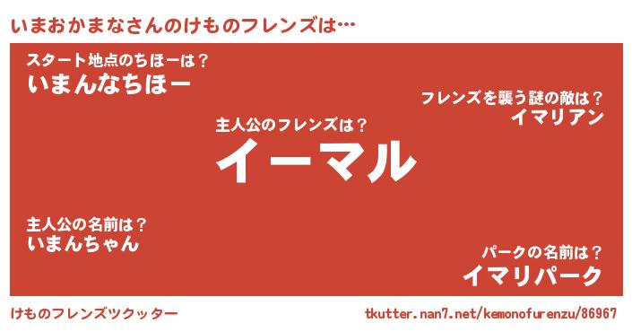 | 料理風あだ名 | 『いまおかまなのカルパッチョ風』 |