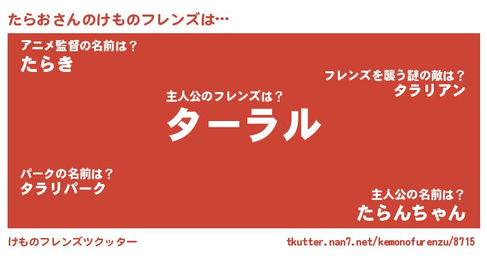 | 意味不明あだ名 | 『永久保存たらお』『たけのこ科たらお属』 |