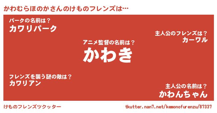 | ポケモン風あだ名 | 『ヒカワムラホノカ』『カワセウス』 |