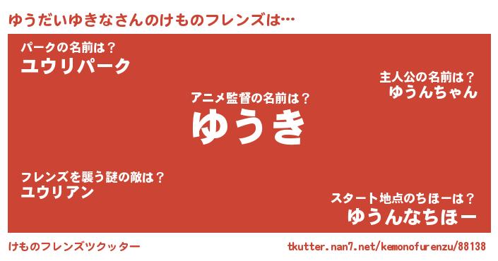 | ピコ太郎風あだ名 | 『ユウ五郎』『ピユ一郎』『ユコ二郎』 |