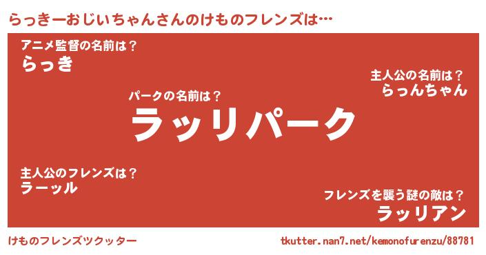 | 料理風あだ名 | 『らっきーおじいちゃんのカルパッチョ風』 |