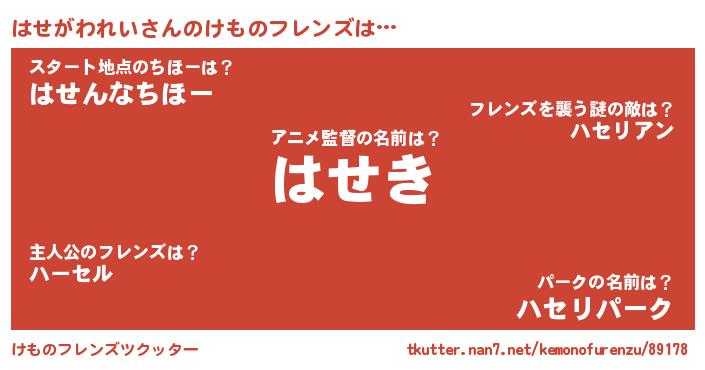 | 意味不明あだ名 | 『住所不定無職はせがわれい(79歳)』 |