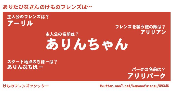 | ヒーロー風カッコイイあだ名 | 『スーパーアリタヒナ』『仮面アリダー』 |