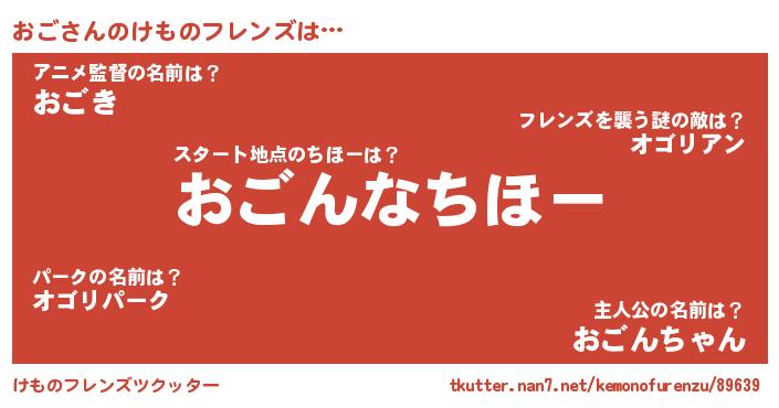| 女子向けラノベタイトル風あだ名 | 『おごの雑貨屋さん』『死神おごの再婚』 |