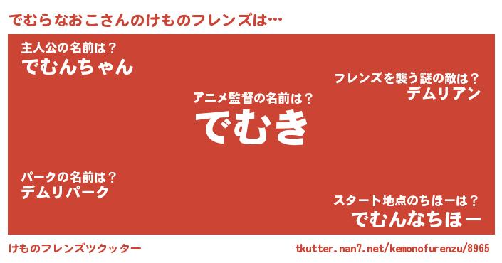 | 肩書あだ名 | 『でむらなおこ教官』『でむらなおこ団長』 |