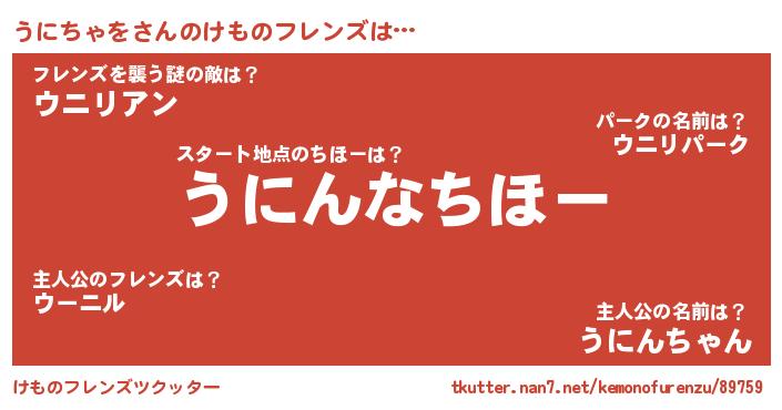 | 2回繰り返すあだ名 | 『ううにに』『ふわふわ』『うにうに』 |