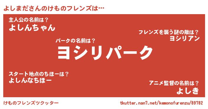 | 意味不明あだ名 | 『自称よしまだ』『ペロリンよしまだ』 |