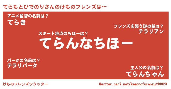 | 2回繰り返すあだ名 | 『ててらら』『ぬるぬる』『てらてら』 |
