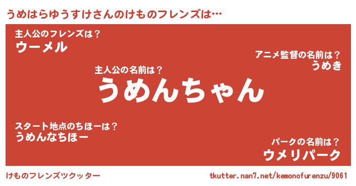 | ポケモン風あだ名 | 『ウメチュウ』『ゼニウメ』 |