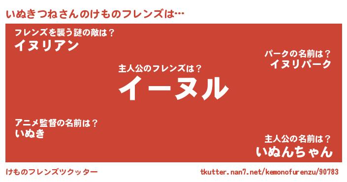 | 男性向けラノベタイトル風あだ名 | 『いぬきつねという概念が存在しない退屈な世界 』 |