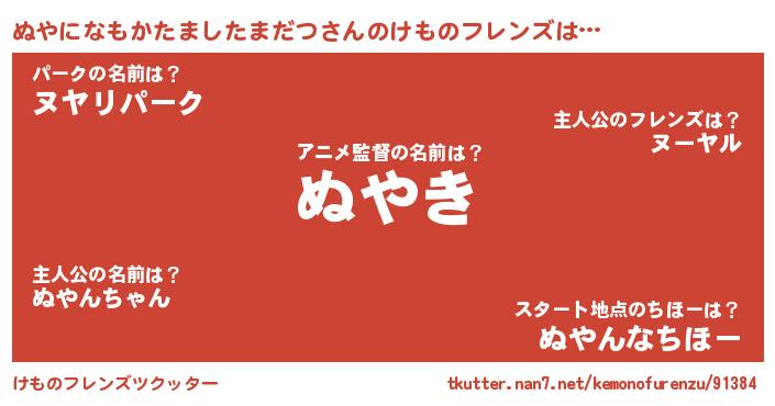 | 料理風あだ名 | 『ぬやになもかたましたまだつごはん』 |