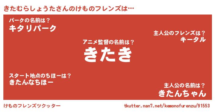 | ポケモン風あだ名 | 『ヒキタムラショウタ』『キタセウス』 |