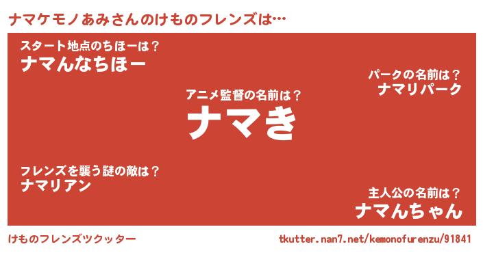 | 2回繰り返すあだ名 | 『なあなあ』『ナナママ』『ナマナマ』 |