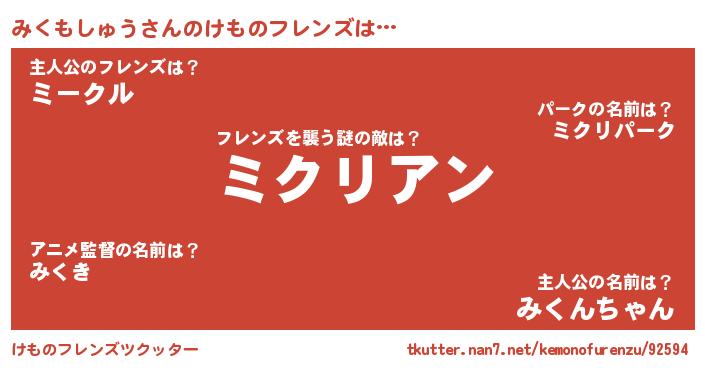 | ヘコむあだ名 | 『みくもしゅう(震え声)』『みくっふぃ~』 |