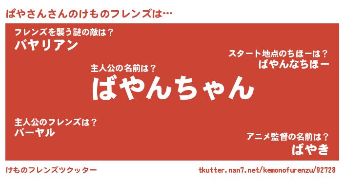 | 2回繰り返すあだ名 | 『ばやばや』『ぼーぼー』『うねうね』 |