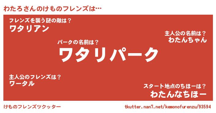 | ファンタジー風あだ名 | 『ゼワタトゥ』『カークワタラー』 |