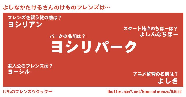 | 意味不明あだ名 | 『住所不定無職よしなかたける(95歳)』 |