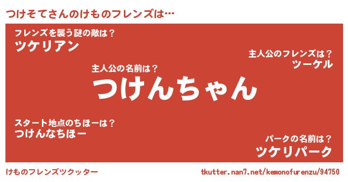 | ポケモン風あだ名 | 『ツケチュウ』『ツックウザ』 |