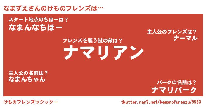 | ヒーロー風カッコイイあだ名 | 『仮面ナマダー』『天空の使者なまずえ』 |