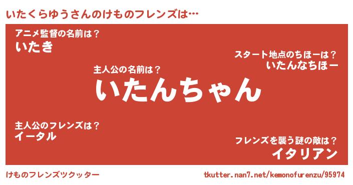 | ヒーロー風カッコイイあだ名 | 『スーパーイタクラユウ』『炎刃騎士イタ』 |