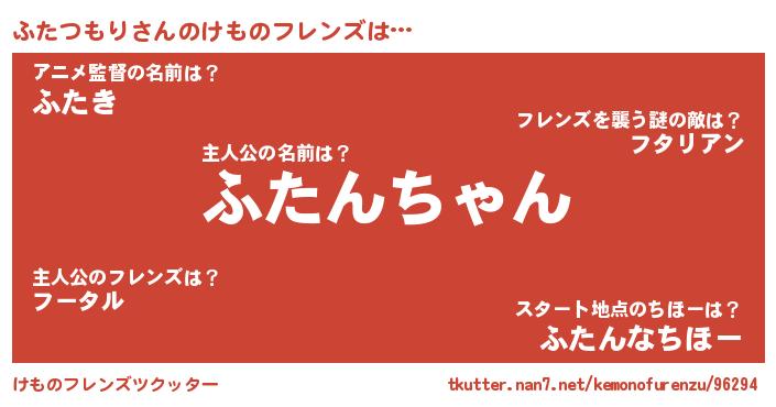| ヒーロー風カッコイイあだ名 | 『スーパーフタツモリ』『天弓騎士フタ』 |