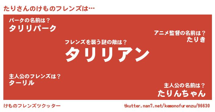 | 女子向けラノベタイトル風あだ名 | 『たり夫妻のなれそめ』『闇のたり』 |