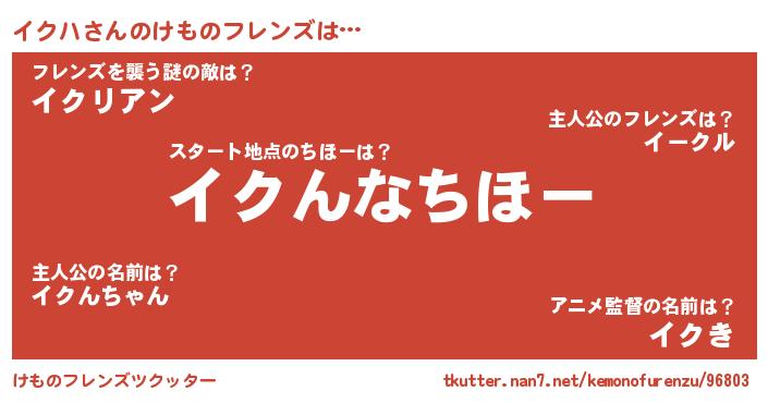 | 2回繰り返すあだ名 | 『イイクク』『ぼーぼー』『わさわさ』 |