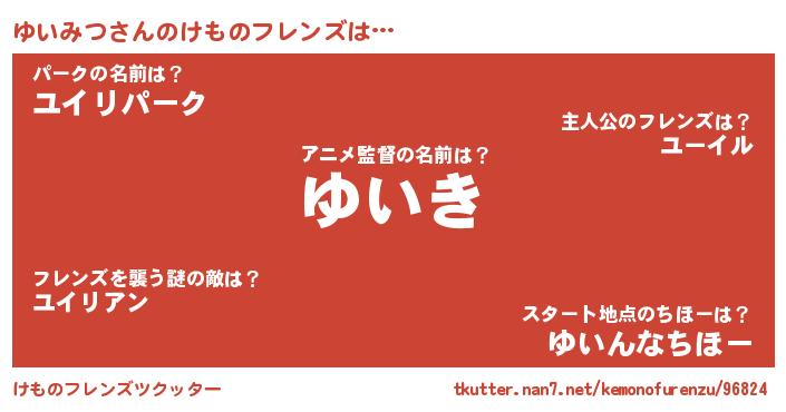 | ヒーロー風カッコイイあだ名 | 『暗黒騎士ユイ』『最強戦士ユイミツ』 |