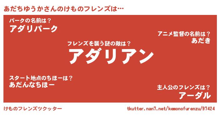 | 肩書あだ名 | 『あだちゆうか助手』『あだちゆうか閣下』 |