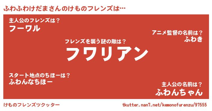 | ヒーロー風カッコイイあだ名 | 『仮面フワダー』『ネオフワフワケダマ』 |