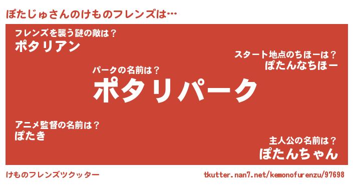 | 男性向けラノベタイトル風あだ名 | 『この素晴らしい世界にぽたじゅを!』 |
