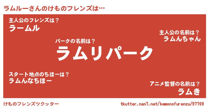 | 意味不明あだ名 | 『自称ラムルー』『永久保存ラムルー』 |