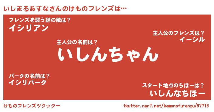 | 恥ずかしいあだ名 | 『プリティーいしまるあすな』『いしちん』 |