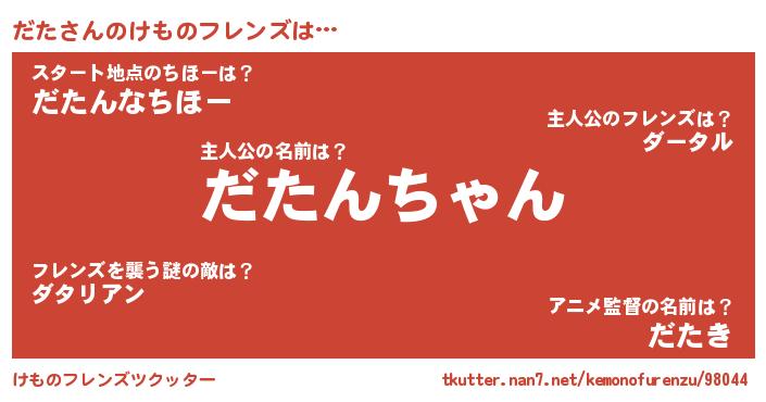 | 2回繰り返すあだ名 | 『だただた』『だだたた』『ちくちく』 |