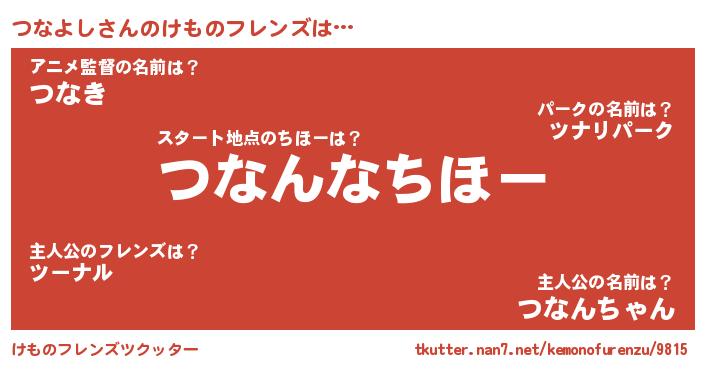 | ヒーロー風カッコイイあだ名 | 『仮面ツナダー』『ウルトラつなよしマン』 |