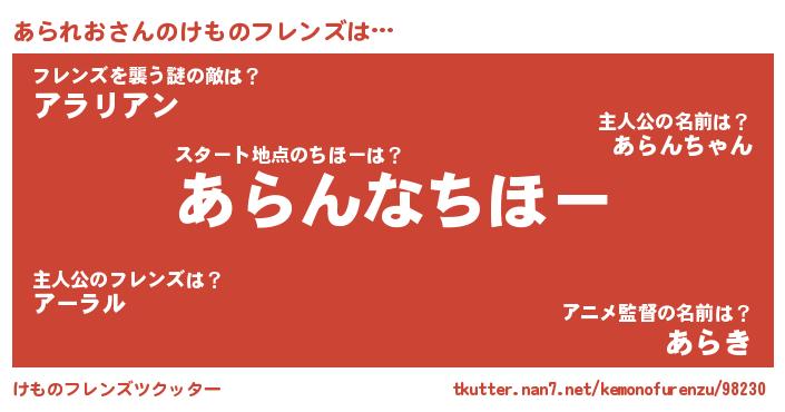 | 男性向けラノベタイトル風あだ名 | 『あられおに滅ぼされるだけの簡単なお仕事です』 |