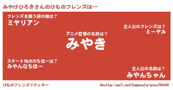 | ヘコむあだ名 | 『みやっ子』『みやにー』『牛乳』 |