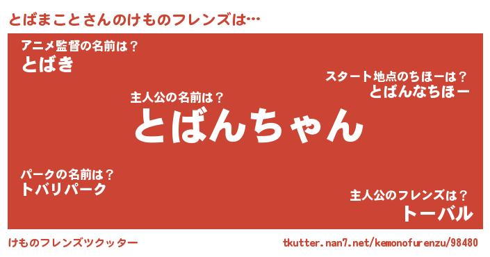 | ポケモン風あだ名 | 『トバチュウ』『ヒトバマコト』 |
