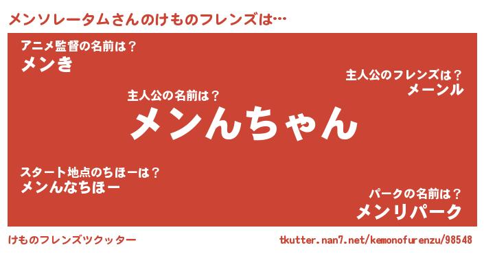 | ヘコむあだ名 | 『メンふぇ~』『メンぷりん』 |