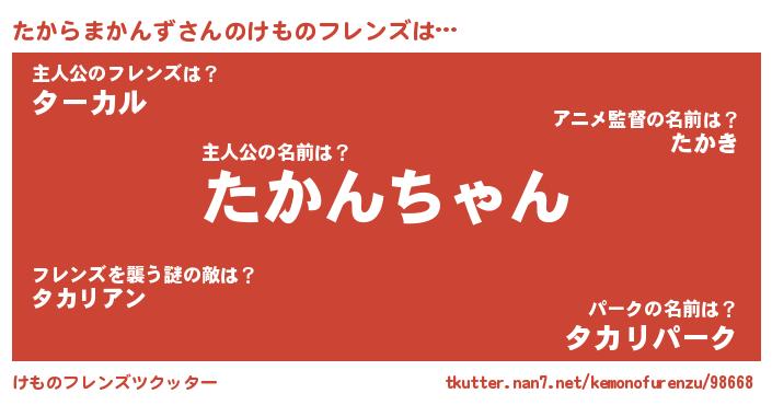 | 男性向けラノベタイトル風あだ名 | 『この素晴らしい世界にたからまかんずを!』 |