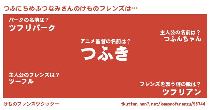 | ポケモン風あだ名 | 『ヒツフニチメフツナミ』『ツフセウス』 |