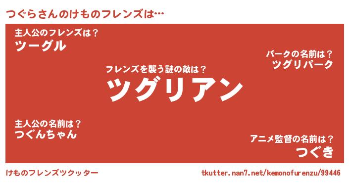 | 意味不明あだ名 | 『ヨモギ科つぐら属』『永久保存つぐら』 |