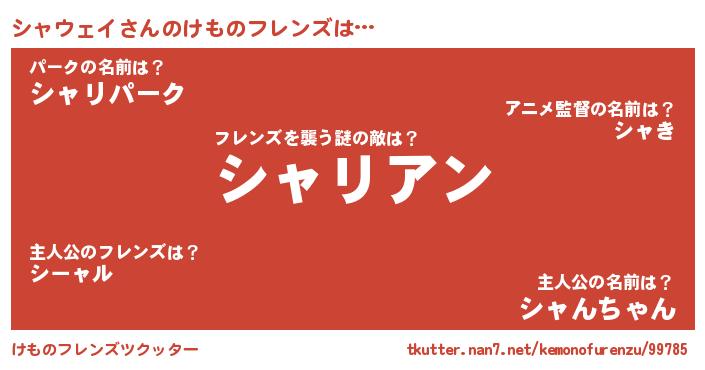 | 男性向けラノベタイトル風あだ名 | 『うちのシャウェイが世界を掌握している!』 |