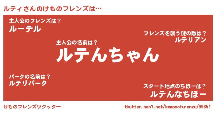 | 料理風あだ名 | 『ルティごはん』『栗とルティのマフィン』 |