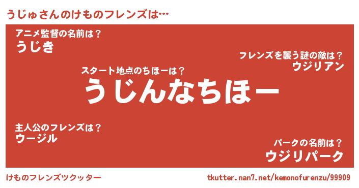 | 2回繰り返すあだ名 | 『ううじじ』『おたおた』『じんじん』 |