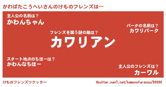 | 伝説のあだ名 | 『救世主となる技術者かわばたこうへい』 |