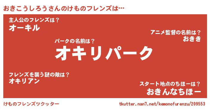 | 男性向けラノベタイトル風あだ名 | 『Re:おきこうしろうから始める異世界生活』 |