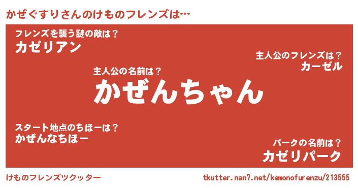 | ファンタジー風あだ名 | 『カゼフェル』『カークカゼラー』 |