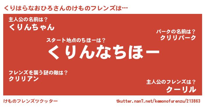 | 2回繰り返すあだ名 | 『くくりり』『くりくり』『しげしげ』 |