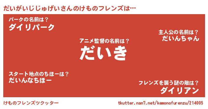 | 意味不明あだ名 | 『とにかく怪しいだいがいじじゅげい』 |